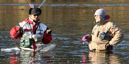 好ポイントが狭く激戦区。前日の昼から待機する人もいるとか。釣堀感覚でみんな仲良く、わいわい釣るのがベスト。堰堤上では年末に準天然のライズが多く見られたので、フライマンはご注意を。